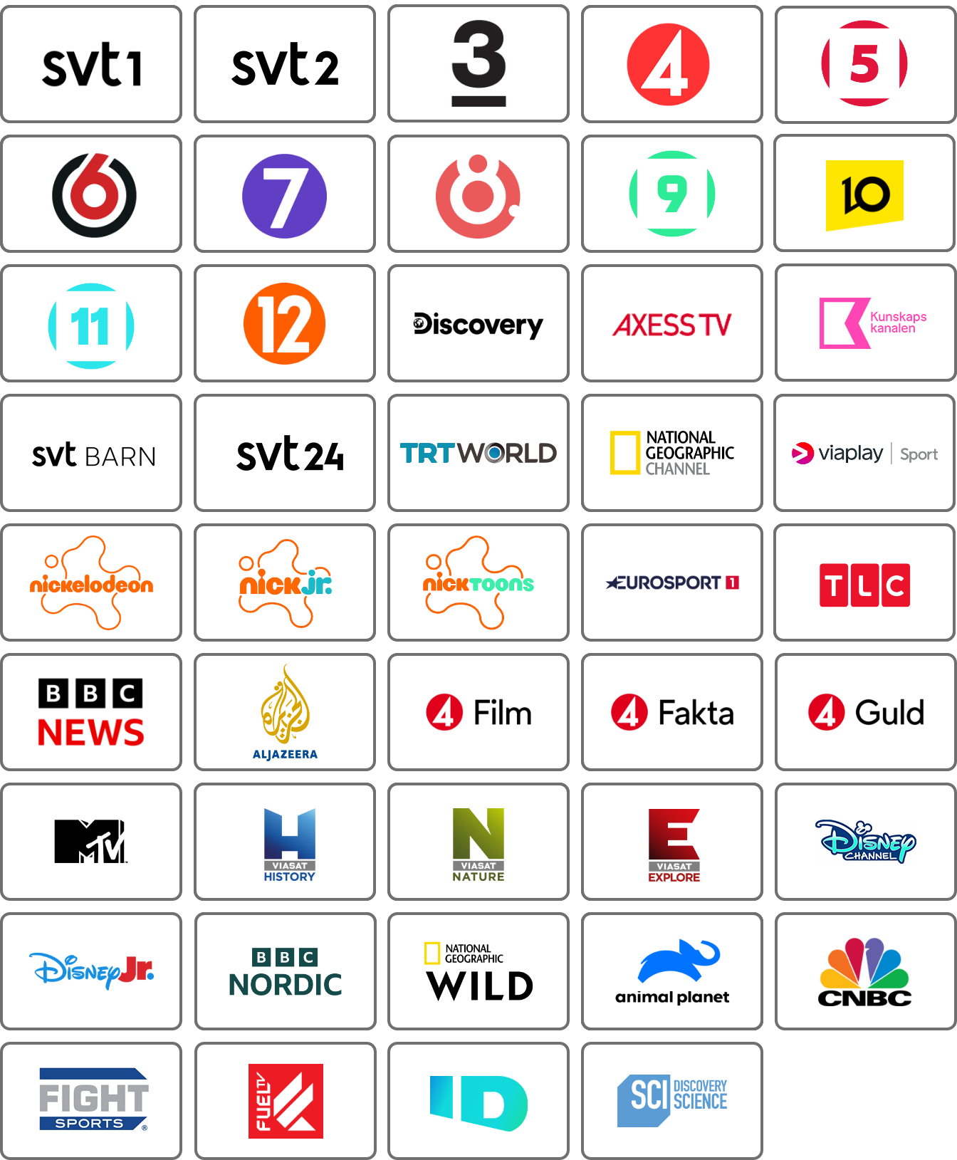 Vi erbjuder tre populära paket: Small, Medium och Large – alla fyllda med olika typer av innehåll som nyheter, underhållning, sport, fakta och barnkanaler.